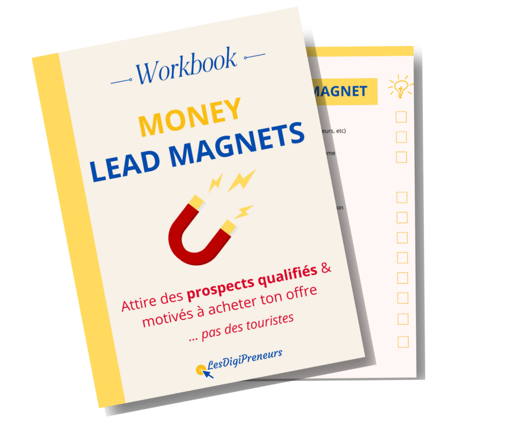 Grâce à une approche « tunnel de vente e-mail », le workbook Money Lead Magnets te donne 4 frameworks testés et prouvés pour créer un lead magnet stratégique qui attire les prospects les plus qualifiés à acheter ton offre.